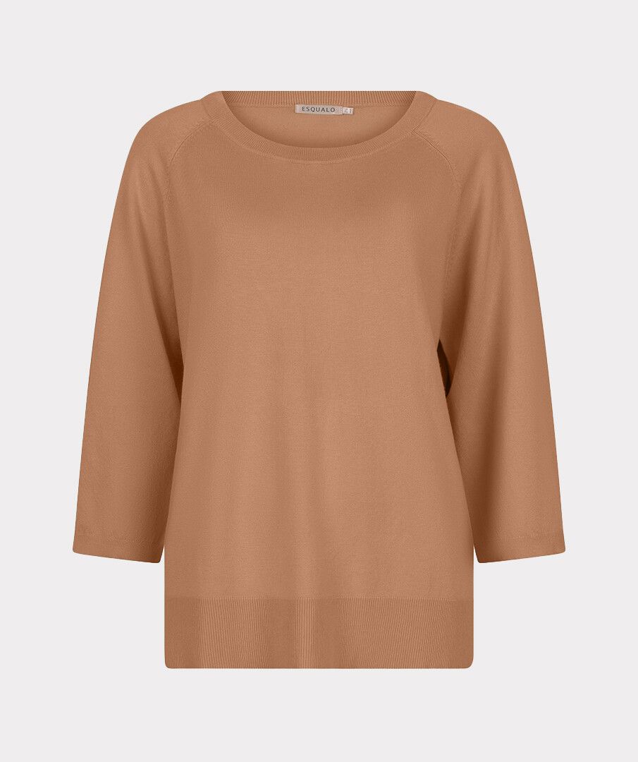 Soft, fine-knit sweater with wide three-quarter sleeves.